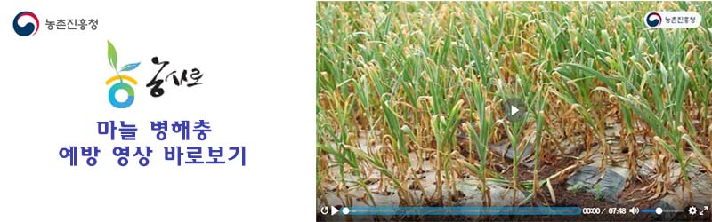 마늘 병해충은 마늘의 품질과 수량을 감소시켜 수확에 어려움을 겪습니다. 병해충의 종류와 방제방법에 대해 알아보겠습니다. 농촌진층청 농사로에서 마늘 병해충에 대한 영상을 참고하셔 마늘 재배에 도움이 되길 바랍니다.